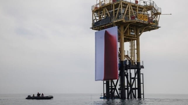 Renowned sculptor Sir Anish Kapoor CBE has collaborated with Greenpeace UK to execute a daring and potentially illegal modern art installation on a platform in the North Sea. This groundbreaking piece marks the first time a work of “fine art” conceived by a prominent figure in the modern art world has been unveiled on an offshore oil and gas structure, according to Greenpeace.