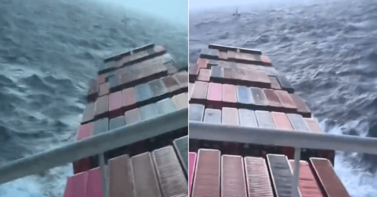 A terrifying video of a massive cargo ship rolling violently in the open ocean has left the internet shaken.